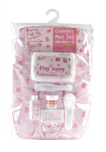 Buy Low Price From Here Now Care for your dollies with this changing set! This cute changing set comprises of a cushioned changing mat for your baby doll to lie on, a re-usable play nappy, real brush and comb for your dolly's hair. There are also pretend pots for talc, cream and wipes! An essential piece of kit for all pampered dollies. Changing Mat Set is a wonderful accessory for your baby dolls!